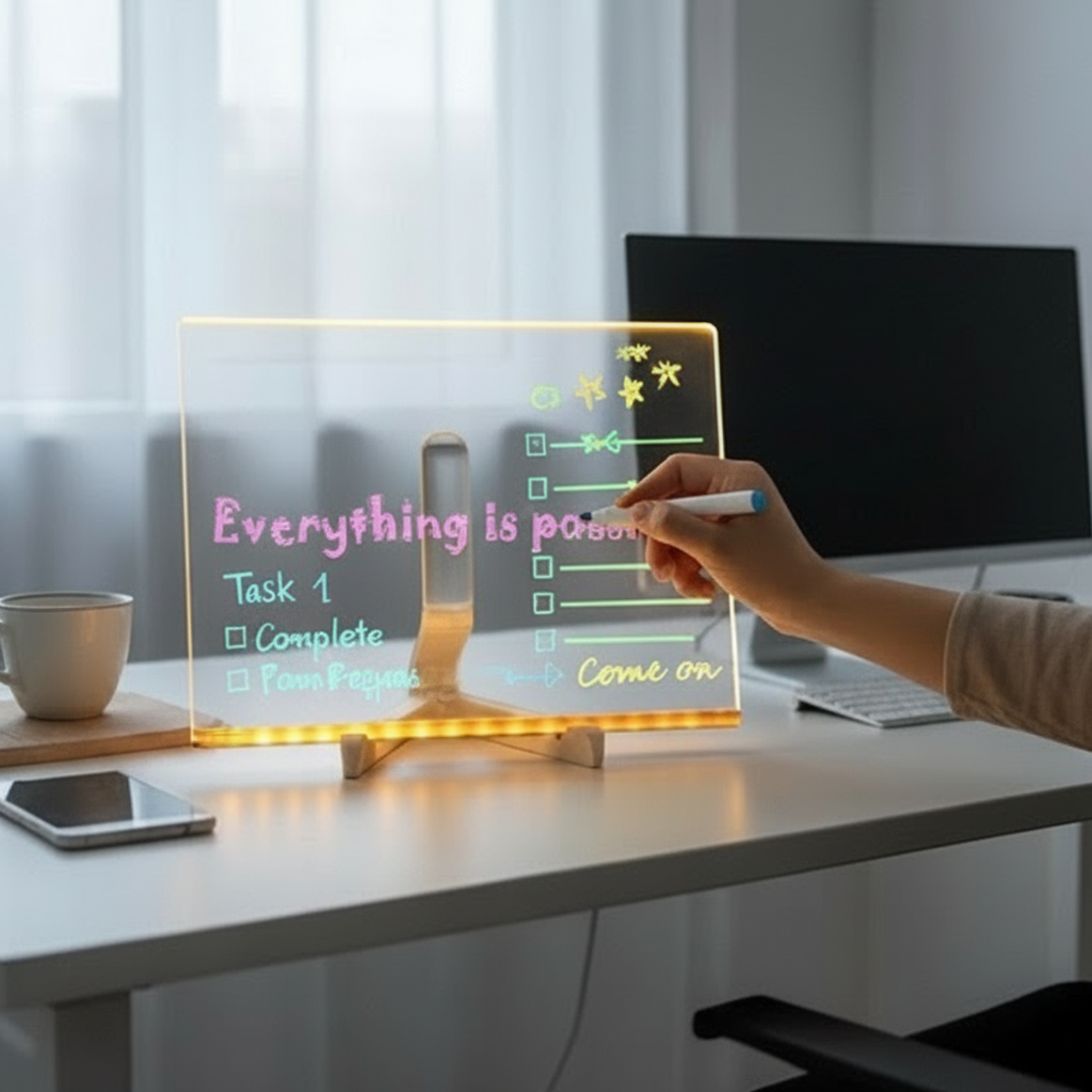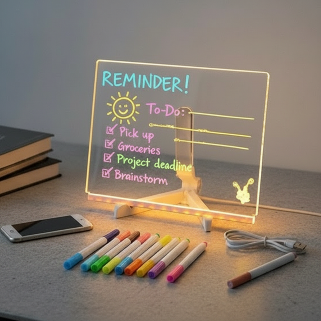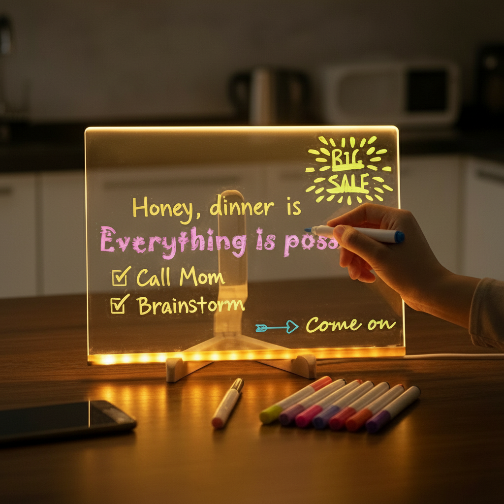 Nuestra pizarra acrílica iluminada está diseñada para esos mensajes que merecen algo más que una nota cualquiera. Escribe un “Te quiero”, una broma interna o una frase que solo tú y esa persona entendéis. Al encenderla, el mensaje cobra vida con una luz cálida que convierte cualquier rincón en un momento especial.